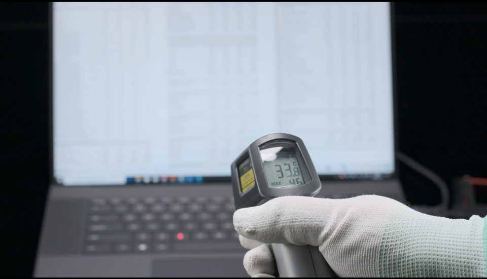 最热处为屏幕下方正中心出风口,达到46度,掌托上同一位置43度,其他地方基本不会高于环境温度10度,掌托温控非常良好。