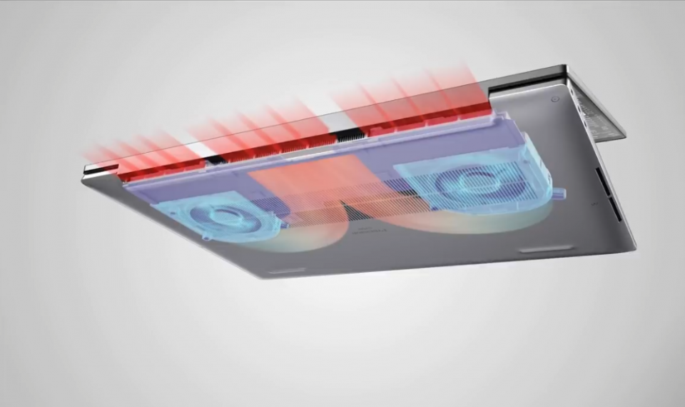 一番思索后不得不感慨一下Precision团队的脑洞,如此设计不仅可以让凉空气流过整个主板和散热片,大大提升散热效率,提高用户体验,而且冷热混合的空气能将屏轴出风温度大降,同时防止中部热气回吸,进一步保护液晶屏。高,实在是高