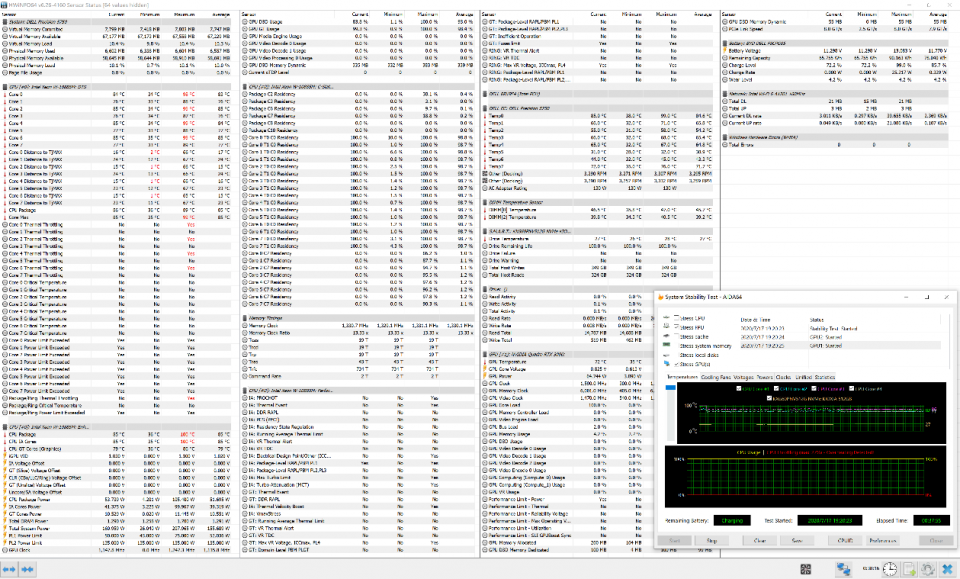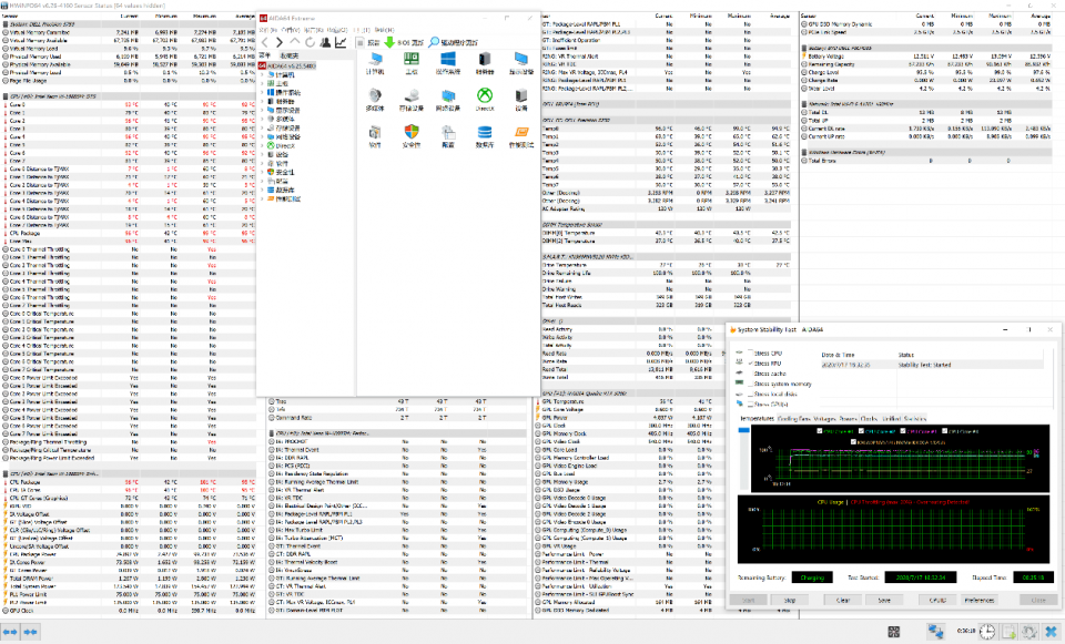 桌面温度25到27(电脑左右两边),后部脚垫垫高一个手机,dell power manager设定为极速,充点阈值设定为50-60。禁用Intel智能调优以获得稳定数据,pwm风扇拉满3300RPM,屏幕亮度降到最低(这个很重要)