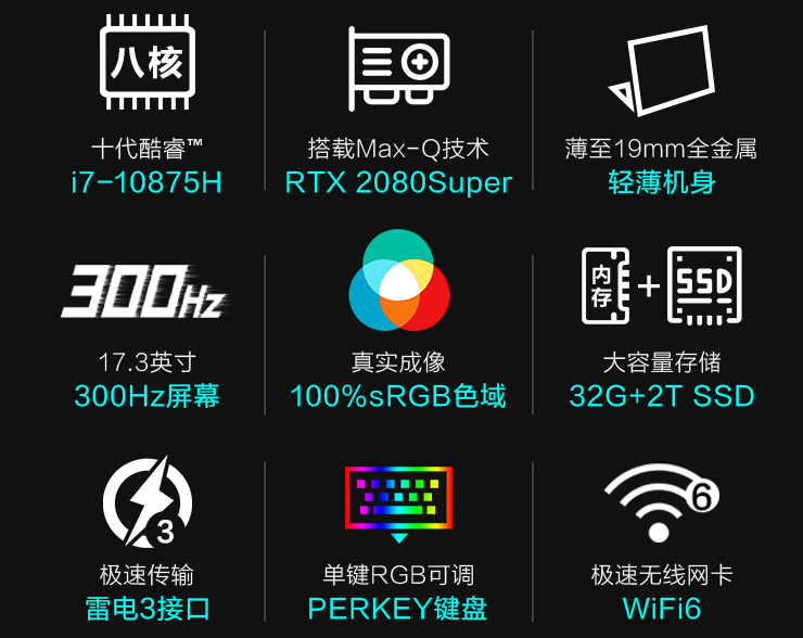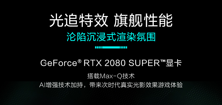 显卡方面,搭载 RTX2080S /RTX2070 光追显卡,搭配 Max-Q 技术,AI 增强技术加持,带来次世代真实光影效果游戏/设计体验,带来沉浸式渲染氛围,彰显明星级旗舰性能。