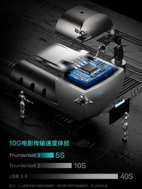 另外值得惊喜的一点是,雷神 911 P1 Plus 在传输方面采用了 Thunderbolt TM3 疾速传输,雷电级疾速海量文件传输,彻底割断羁绊,快到酣畅淋漓。