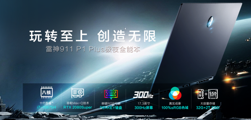玩转至上,创造无限。第十代智能英特尔® 酷睿™八核 i7,宗师级高性能移动版处理器电竞杰作、搭载 RTX2080S/RTX2070 光追技术高性能显卡——全新雷神 911 P1 Plus 全能本来袭,将于 8 月 10 日预售全面开启。预约享 8 月 13 日首发价低至 14999!