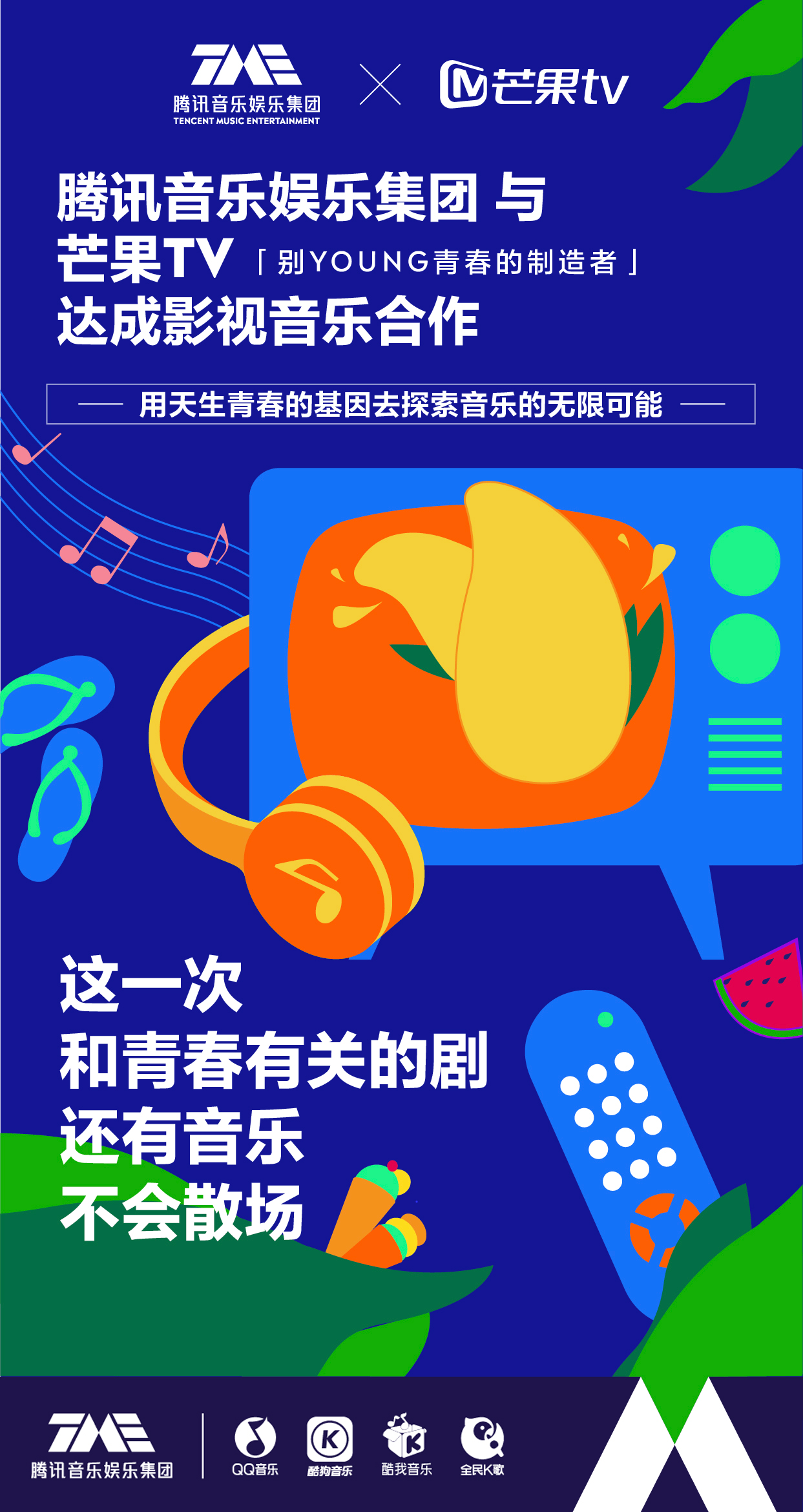 近日,腾讯音乐娱乐集团与芒果TV围绕影视音乐内容正式达成影视音乐合作。即日起,双方将以内容IP为合作基石,围绕影视音乐的内容共创、联合出品、作品分发等线上线下全场景布局等全新合作模式,共同挖掘、探索影视音乐更多潜在价值。