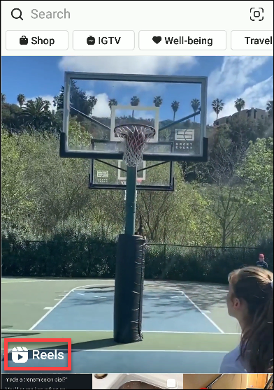 用户第二个反馈是「不好找」。Instagram 目前没有给 Reels 在主页面设置独立入口。Reels 被放到一个不算显眼的位置,从主页面底部「搜索」进入搜索页面,在搜索页面的 feed 流中充斥着图文,IGTV,Stories,Reels 各种形式的内容,用来识别 Reels 和其他类别视频的仅仅是左下角的 logo。