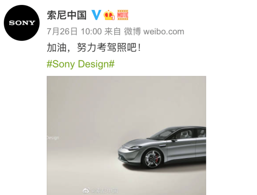 近期索尼中国发布微博:“加油,努力考驾照吧!”,并附上一张纯电概念车Vision-S的图片,让人浮想联翩。