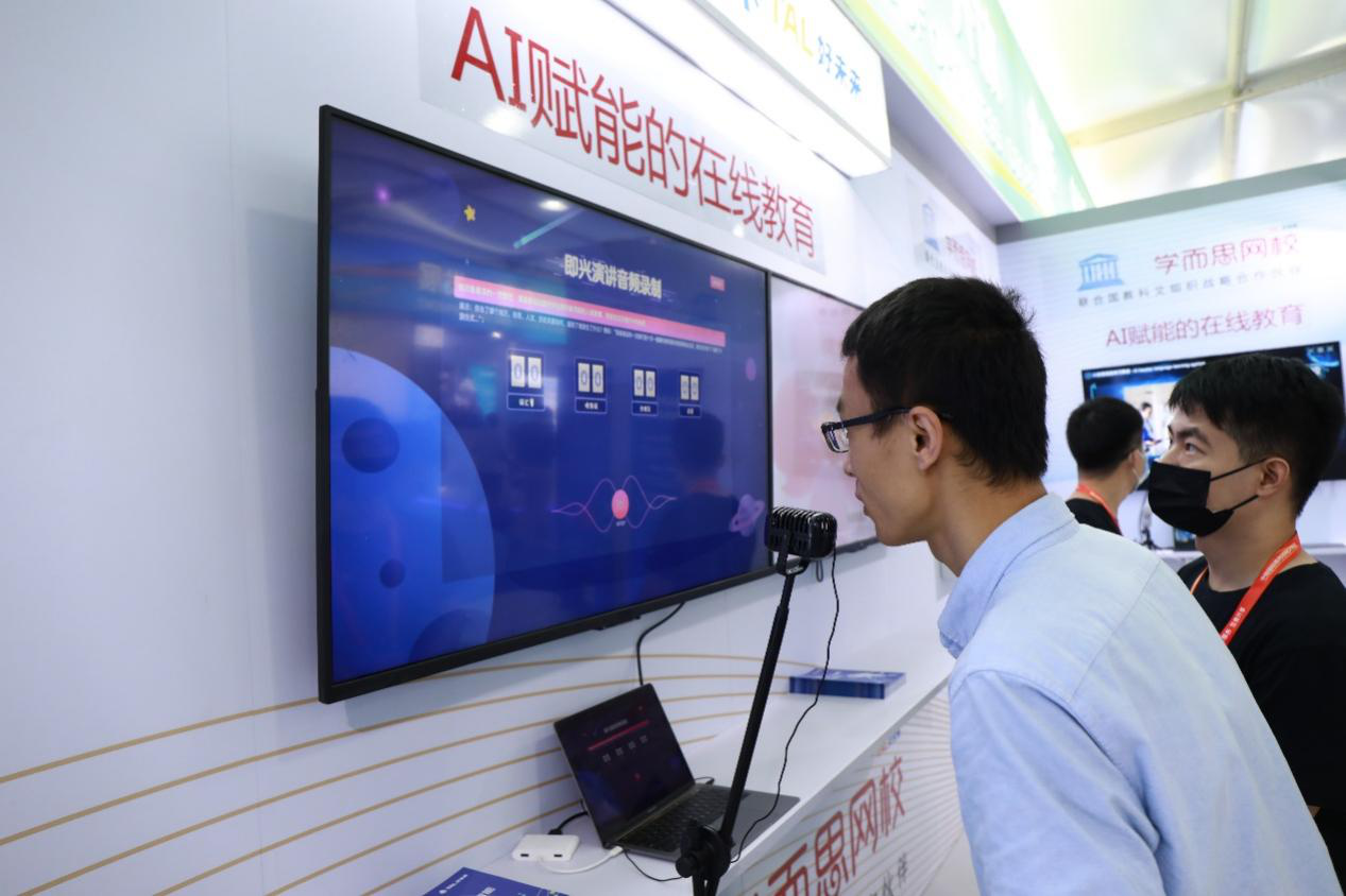 学而思网校“AI老师汉语学习系统”吸引了很多嘉宾驻足体验