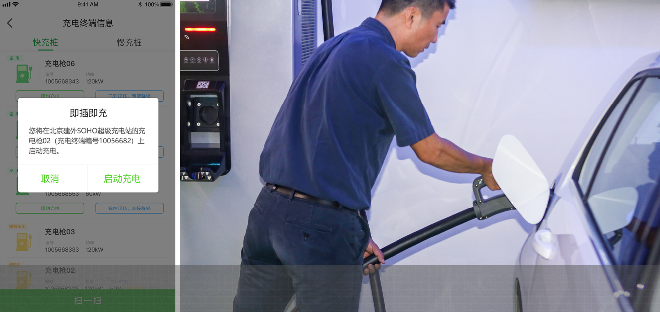 无需扫描充电二维码,便可实现直接插枪后在 APP 中启动充电的功能展示