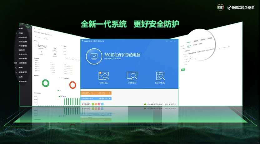 此次发布会,最先亮相的是 360 政企终端安全产品体系中的拳头产品——360 终端安全管理系统。为更好地响应传统安全与高级威胁并存的复杂环境,真正实现传统终端安全管理从「合规驱动」走向「能力驱动」,在 360 安全大脑赋能下,360 终端安全管理系统应运而生。360 终端安全管理系统整合了 360 全新的杀毒引擎、主动防御引擎、全新的高级威胁检测技术,以全面的服务为保障,集防病毒与终端安全管控于一体的新一代终端安全产品。