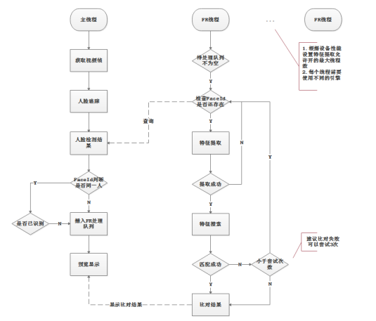 从技术原理来说,算法在运行过程中,会检测视频系列帧前后的人脸移动情况和特征,从而进行追踪和检测。以虹软视觉开放平台的ArcFace免费人脸识别算法为例,当人脸入框时,算法会根据检测结果为该张人脸标记一个FaceID。该人脸从进入画面到离开画面的整个过程中,FaceID不变,算法也不会重复提取特征值,避免重复识别导致资源无效占用。
