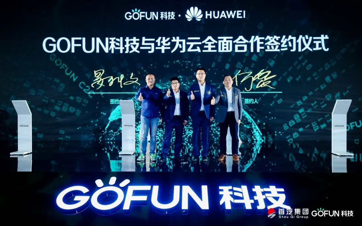 现场,GOFUN 科技与全球领先的 ICT 基础设施供应商华为云达成合作,未来,双方将开展在智能客服、智能视频分析、知识图谱等新领域的技术合作,为汽车产业链上下游客户,提供车辆资产及运营全生命周期管理和服务的数字化解决方案。