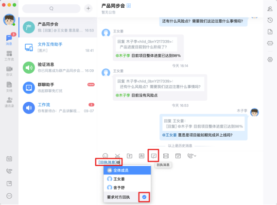 同样是在工作群内,还常常出现多人同时汇报工作,客户或上司“连环追问”的情况。此时使用如流的回复特定消息功能,就能在多重信息中对“目标信息”精准回复,避免对方会错意。