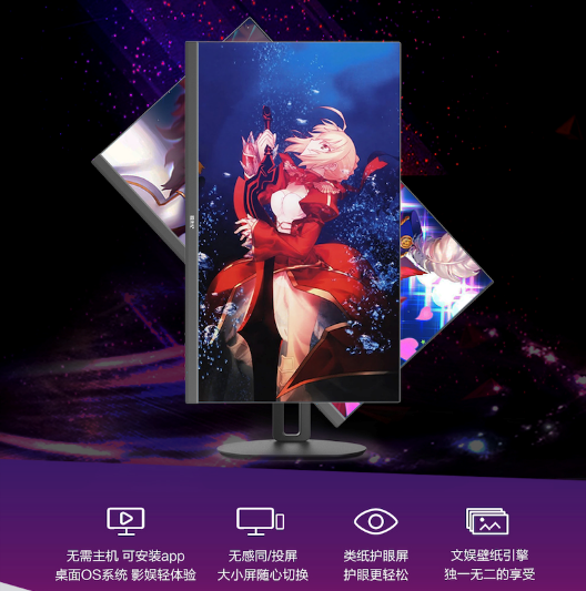 京东方拾光纪桌面智慧屏 SA27D0,打破了显示器只能作为主机配件的常规,其自带桌面 OS 智能系统,无需连接主机可以独立安装 APP。