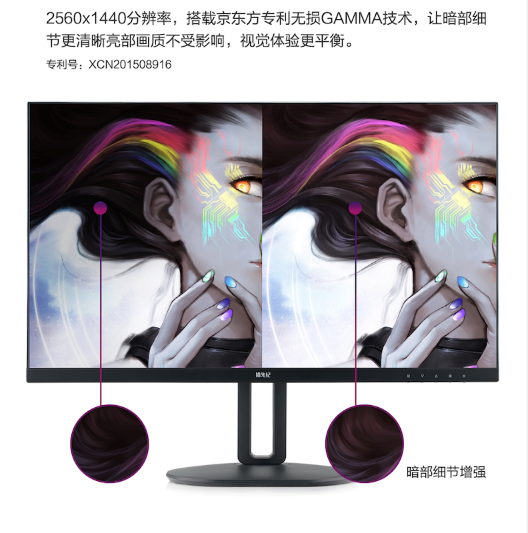 无损伽马显示专利技术:普通显示器在校正后经常会有丢失灰阶的情况,导致屏幕整体呈现较为暗沉,甚至会有图像模糊的现象出现,而京东方拾光纪桌面智慧屏 SA27D0 搭载京东方专利无损 GAMMA 技术,让暗部细节更清晰,亮部画质不受影响,视觉体验更平衡。