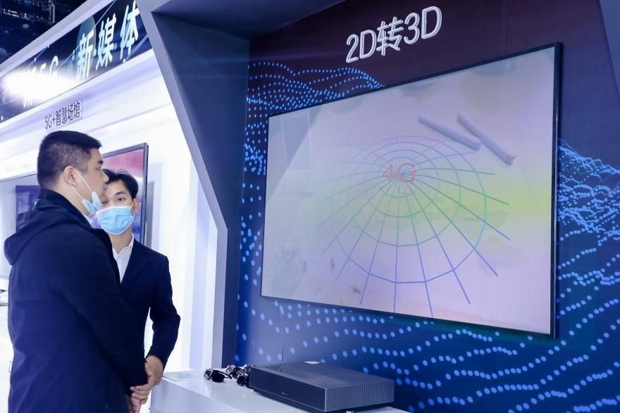 在本次新媒体大会「走进马栏山」主题展示活动中,中兴通讯展示了 2D 转 3D 家庭巨幕影院、5G+智慧场馆互动体验、5G+全息采访等多项 5G+新媒体类创新实践。