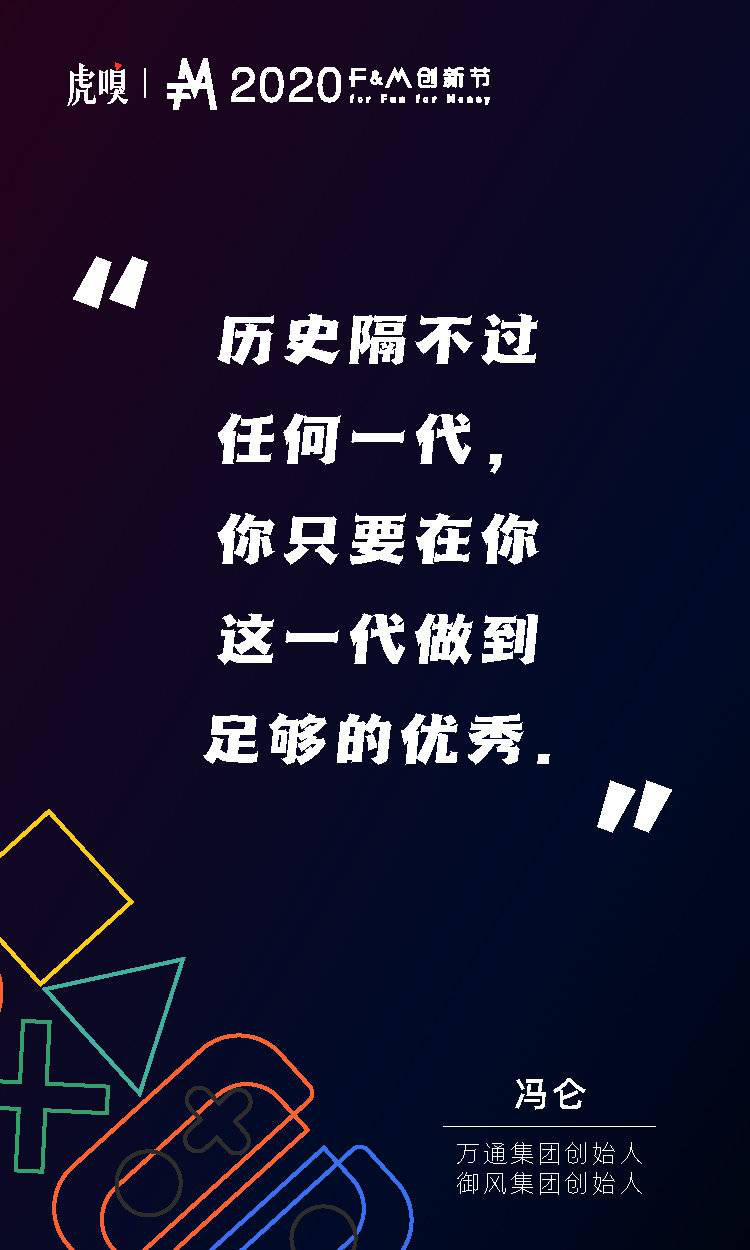 冯仑:我有一个老大哥他就跟我说——当时我有一点小抱怨,有一段时间,他们突然都去做生意了,我不太适应,我说怎么弄?——他就说,你记住,历史隔不过任何一代,你只要保持在你这一代人你做到足够的优秀,你就有机会。我看看周围,我也只能做生意了。这个老大哥给我讲的就是历史隔不过任何一代,不会把你落下的,只是说,你自己做多少事情。比如说这代人的技术创新,你写一个软件就可以赚这么多钱。