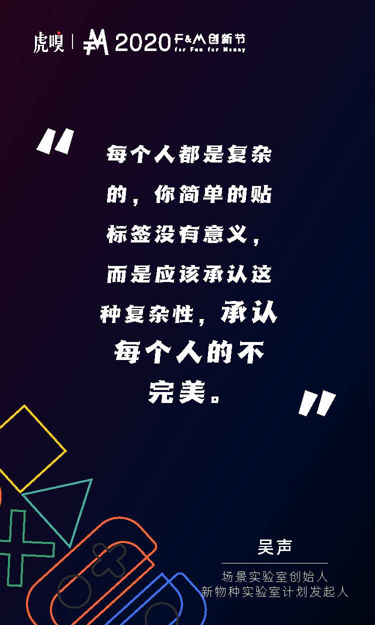 面对这个问题,吴声认为,两性话题显然没有被过渡讨论:「如果我们还原到真实的场景里面来,我们还会说互联网本身就是女性思维,这个到底是对女性的抬高,还是贬低,还是不屑一顾?没有那么的矫情。我觉得社会到底是在进步还是退步,今天我们坐在这儿聊,我希望每一次的抚摸都是一次观念的微小进步。」