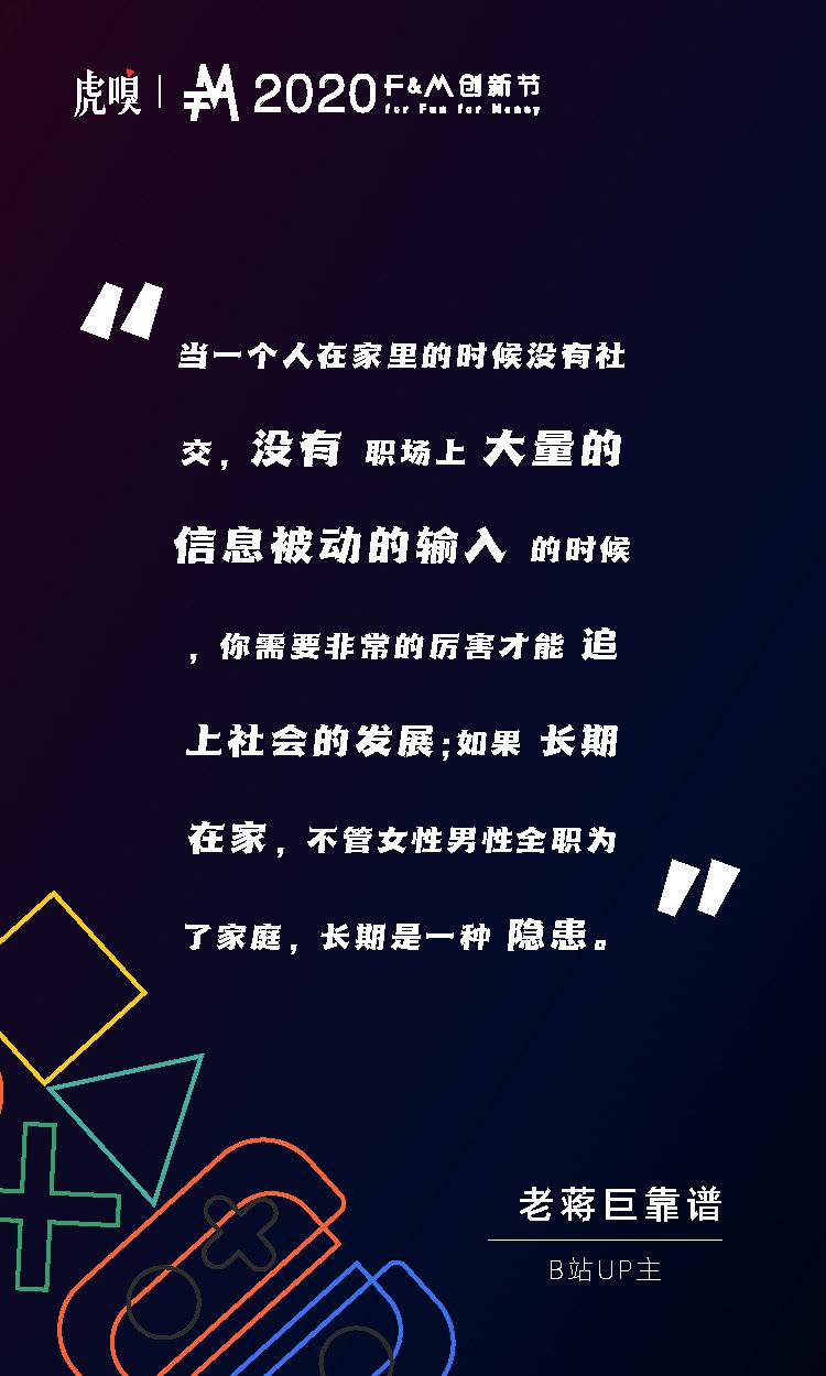 老蒋巨靠谱:我们家是上班的,而且是产品经理,互联网行业。我没有李楠总的财力,跟财力是有关的,我觉得如果财力特别大的时候,双方的选择都会多。如果都没有到这个财力,双方共同抗击这个风险,而且还不光是钱的问题,当一个人在家里的时候没有社交,没有职场上大量的信息被动的输入的时候,你需要非常的厉害才能追上社会的发展,如果长期在家,不管女性、男性,全职为了家庭长期是有一种隐患。
