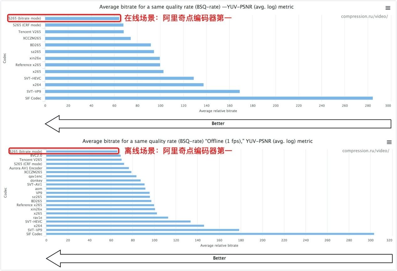 阿里奇点编码器包揽PSNR指标两项第一(数值越小越好)