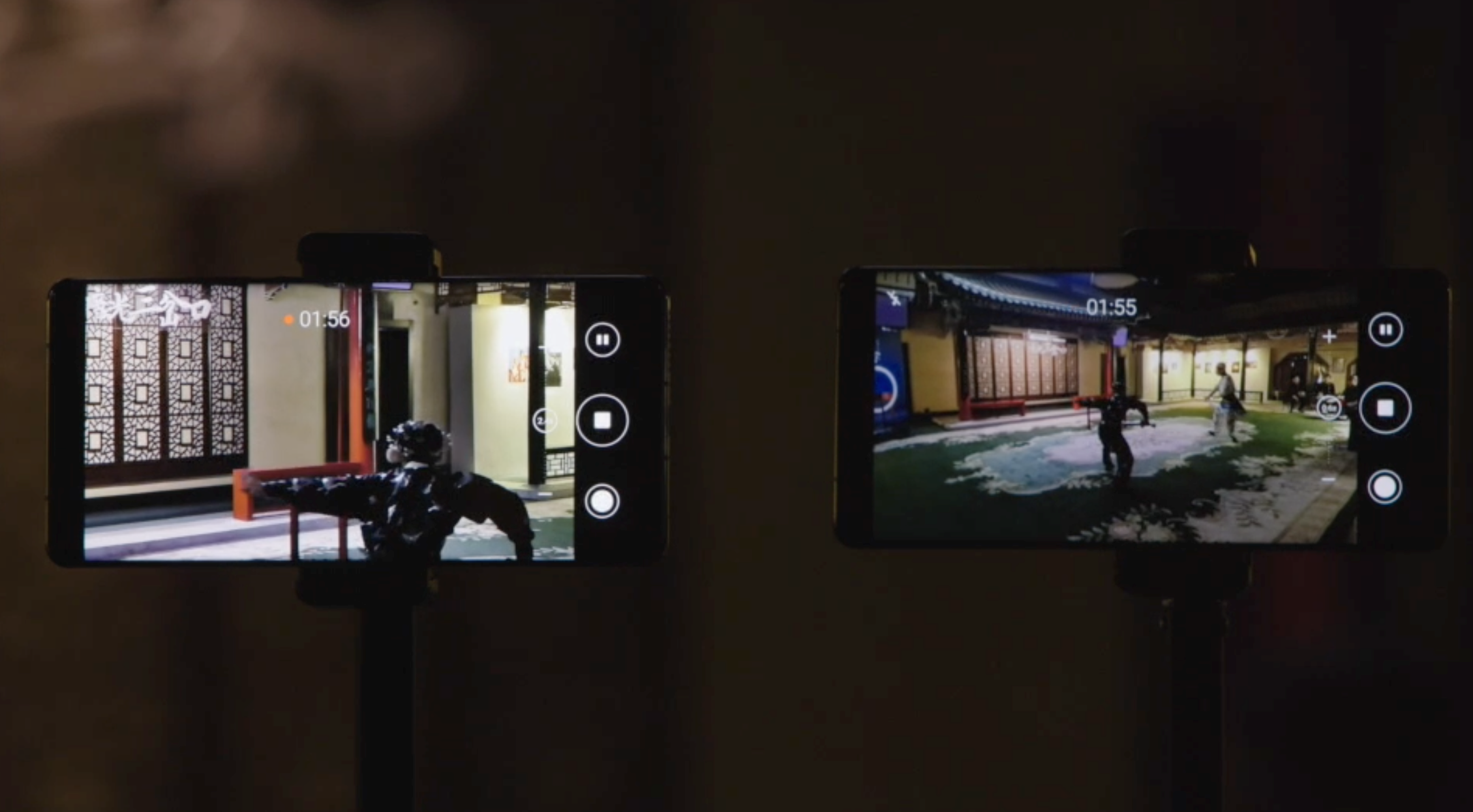 暗光《三岔口》中,京剧演员武打动作多、幅度大,但是华为 Mate40 系列却始终将他们定格在画面中央,这是由于华为 Mate40 系列采用了 AI 跟拍功能,利用先进算法,通过广角画面实时裁切放大实现自动动态跟随,让京剧演员始终占据 C 位。加上激光对焦传感器的支持,华为 Mate40 系列在黑夜中对焦也能准确精准,不会出现虚焦现象。华为 Mate40 系列还加入了 XD Fusion 硬件实时视频 HDR 功能,高光不过曝,暗部有细节,能做到画质的进一步提升。