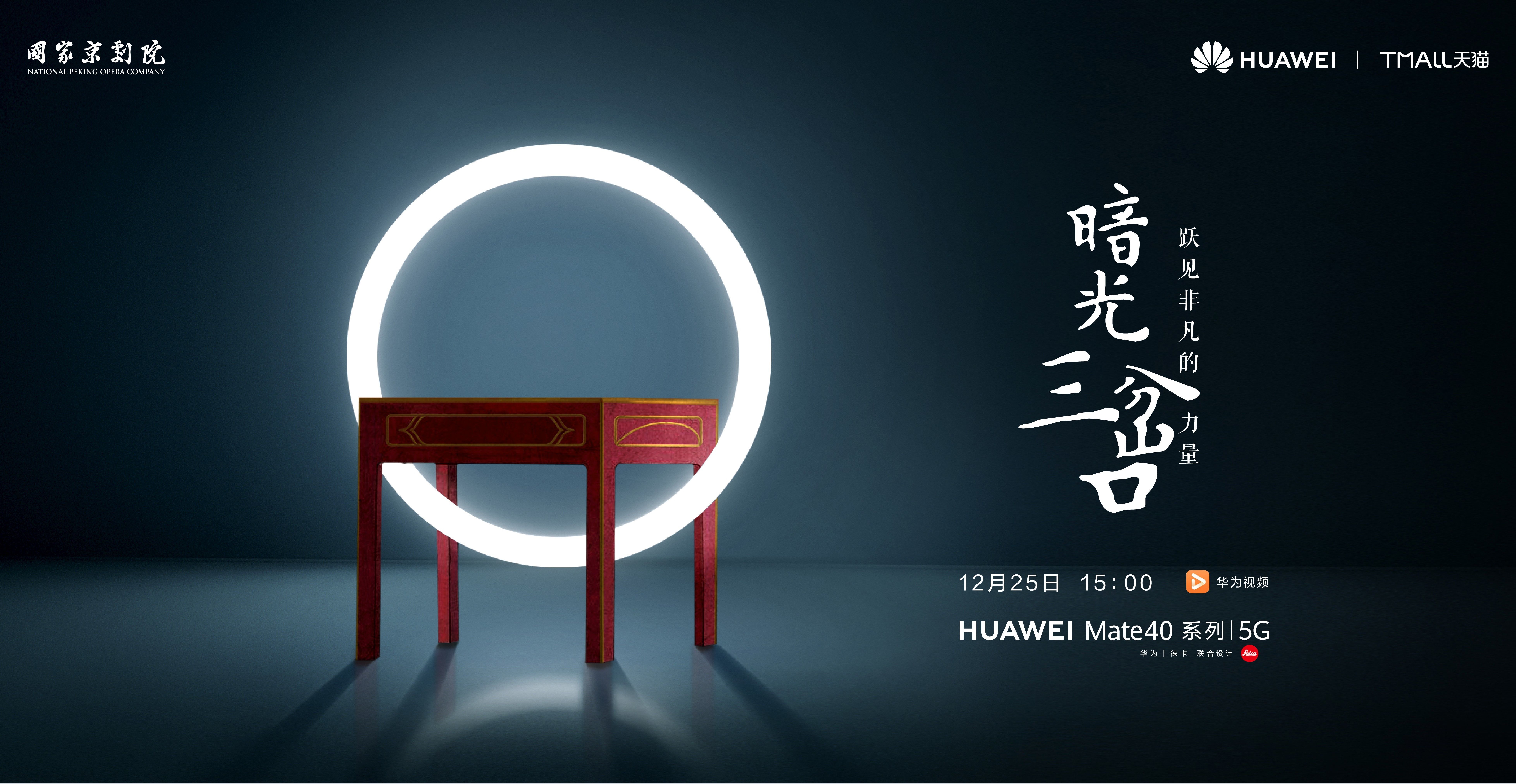 12 月 25 日,华为联合天猫平台携华为 Mate40 系列及智慧屏 S 系列等全场景产品开启天猫华为盛典,面向消费者全面打造全场景智慧生活。为了让消费者更直观深入的体验全场景,华为 Mate40 系列合作国家京剧院上线暗光《三岔口》,将一场沉浸式京剧体验呈现在观众面前,京剧行业艺术家宋小川、京剧文化弘扬者王珮瑜与著名演员斓曦带领观众共同见证百年传统艺术的技与艺,通过华为 Mate40 超感知徕卡电影影像,让更多人看见、了解、享受京剧。