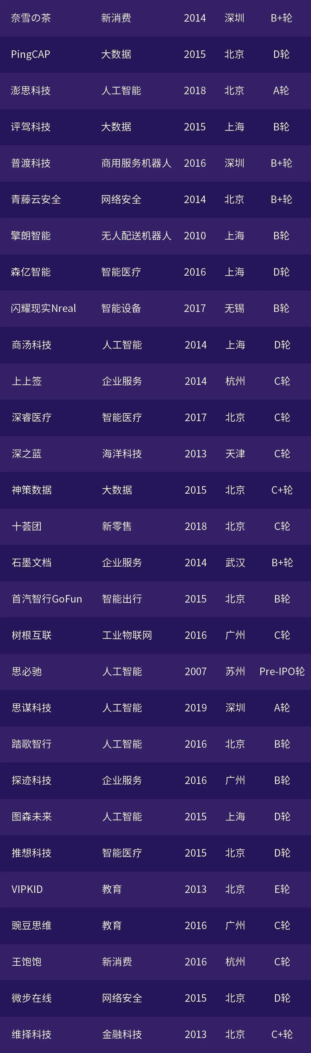 从成立时间来看,上榜企业大多集中在 6 年以内,合计占比超八成,其中成立于 2014-2016 年的企业占比最多,达到 64%。而从覆盖的领域来看,人工智能、医疗健康和先进制造企业占据上榜企业的前三位,合计占比达 6 成。