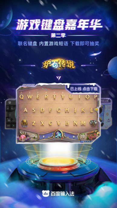 从席卷全球的卡牌游戏《炉石传说》,到全球各大应用商店“屠榜”的《万国觉醒》,再到新晋多人实时对战游戏《荒野乱斗》,几款大热游戏IP再次扩充了百度输入法的皮肤内容布局。每款游戏键盘不仅延续了相应游戏中的设计风格,熟悉的角色还搭配百度输入法独家的“皮肤主体C位识别”能力打造浮出特效,观赏性与实用性极高,不仅让游戏玩家们爱不释手,也受到了更广泛年轻用户群体的喜爱。与此同时,第二季活动还带来更多抽奖好礼,用户下载启用游戏键盘即可参与“史上最强输入法游戏抽奖”,包括游戏礼包秘钥(CDKEY),买不到的官方珍藏周边以及键盘、耳机等酷炫游戏外设在内的多重“壕礼”。