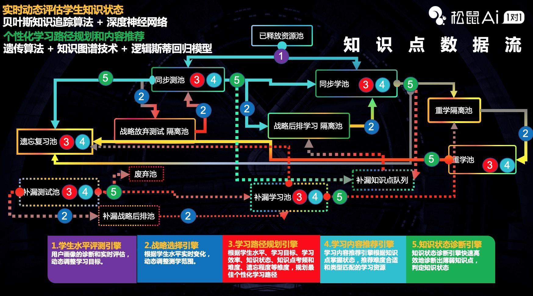 沟通会上,松鼠 Ai 首次对外讲解如何做教研,核心是用「Ai 打地基」。核心是将知识点以最小颗粒度进行拆分,分到各个池子里。假设学生使用产品时只能考 50 分,产品程序中的「战略放弃隔离池」将发挥作用,把考到 75 分以上所需学习的知识点隐藏,待学生能力提升到一定程度后自动陆续放出,随着学生数据的增加和改变,先学什么后学什么,该学什么不该学什么,系统也会相应作出调整。目的是让学生少做无用功,提高学习效率,查缺补漏,不会因为学生难度的突然增加丧失自信。