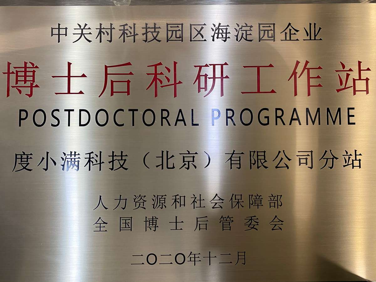 (图为度小满金融博士后科研工作站获北京市人力资源和社会保障局授牌)