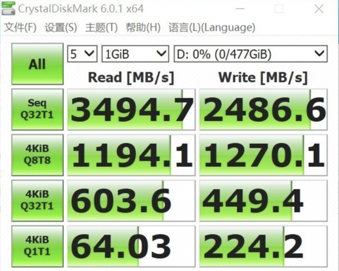 在业内常用的测速软件CDM中,连续读取高达3500M/s上下,这在拷贝大型影视素材,或者大型游戏时,能够大大节省拷贝时间。