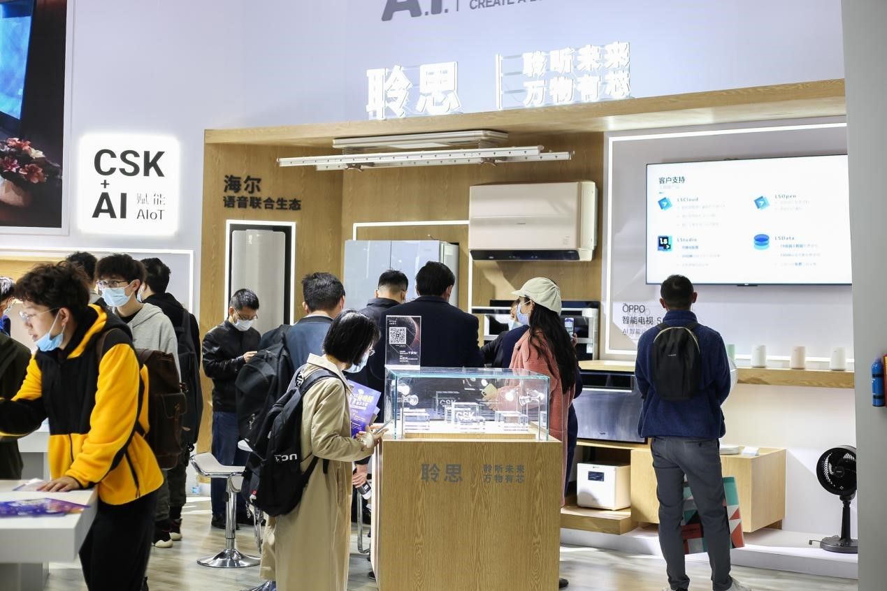 本届 AWE 上,科大讯飞携手 A.I. 芯片生态合作伙伴聆思智能,以软硬件一体化加速 AIoT 的行业落地。聆思依托讯飞核心 A.I. 算法能力和自身芯片设计技术,打造出面向 AIoT 领域各类场景下的解决方案,并联合众多合作伙伴推出覆盖大小家电、厨电、黑电、消费电子等多领域多品类智能产品。「冰空洗热」能听会说、厨电黑电一语即动、消费电子花样频出……科技满满的 CSK 芯片应用,让消费者离未来梦想生活更近一步。