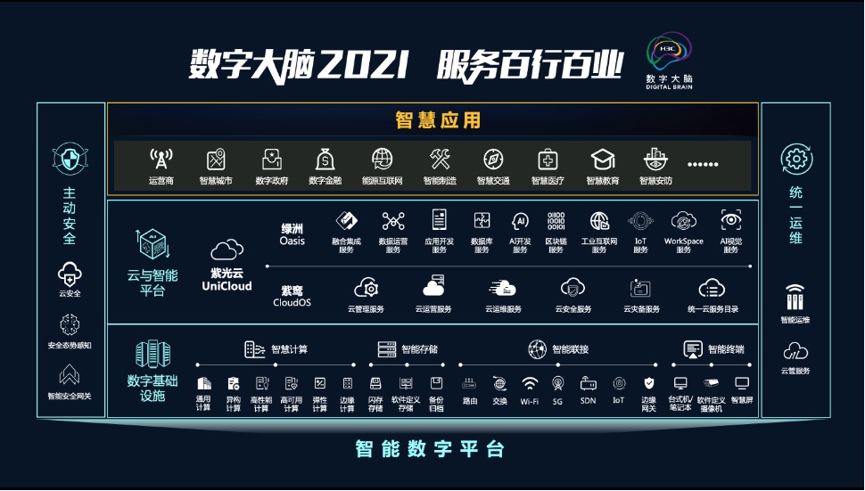 - 基于「云智原生」的数字化技术,新华三发布「数字大脑 2021」,更好地赋能客户迈入数字化应用的新阶段。