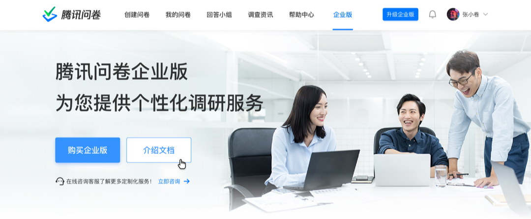 2月,腾讯问卷企业版一经推出,就有很多企业级用户表示支持,并在他们使用过高级功能后,再次得到了认可。为了不辜负大家的信任,腾讯问卷不敢有丝毫懈怠,继续努力完善企业级调研所需的功能。