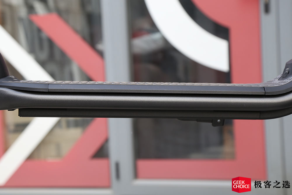 另外,站在踏板上之后,视野也有了更好的表现,能够得到出色的道路视野,即使是高度增加了,但因为电池是放在踏板部分,所以整个电动滑板车的重心还是比较低的,所以在行驶时不会有很飘的感觉。