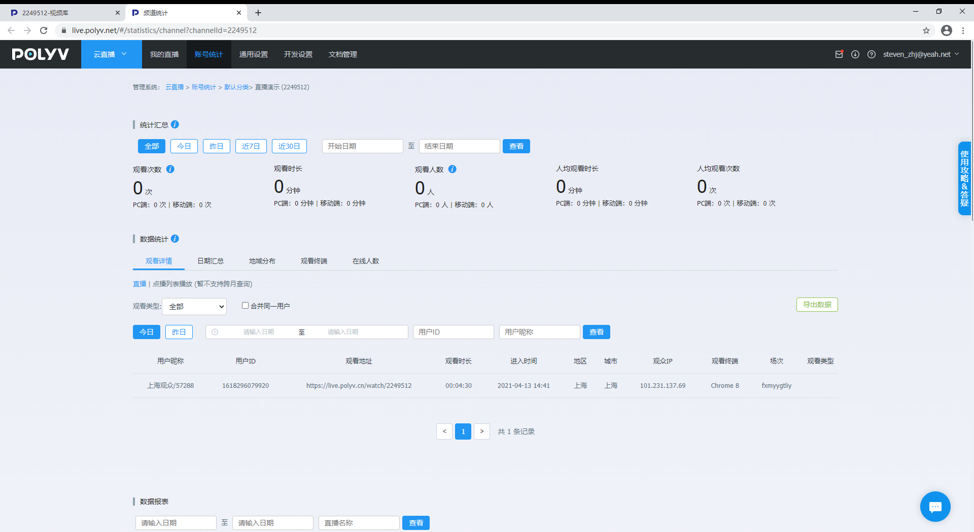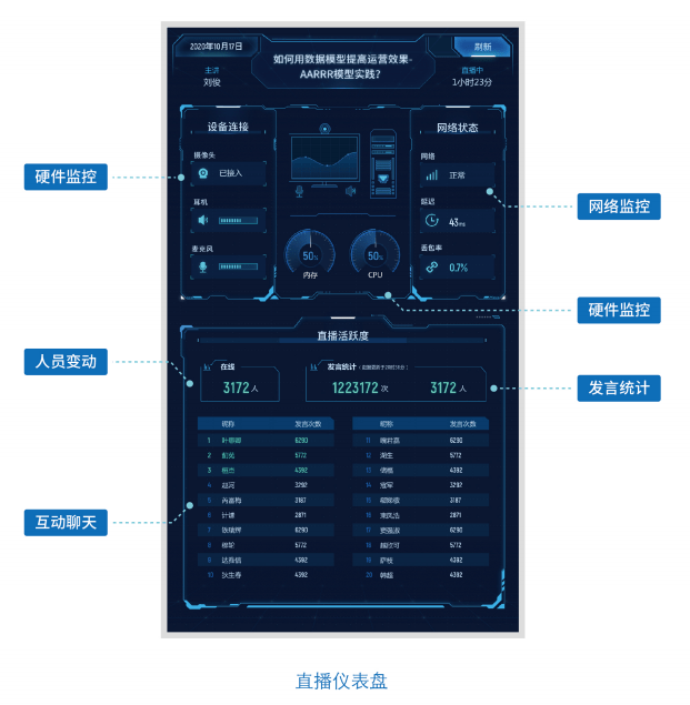 值得一提的是,在直播舱内的每场直播中,后台都能抓取用户观看行为、统计观看信息,并在直播后自动生成统计报表,可视化呈现直播效果,帮助企业实现后期的精细运营与优化。