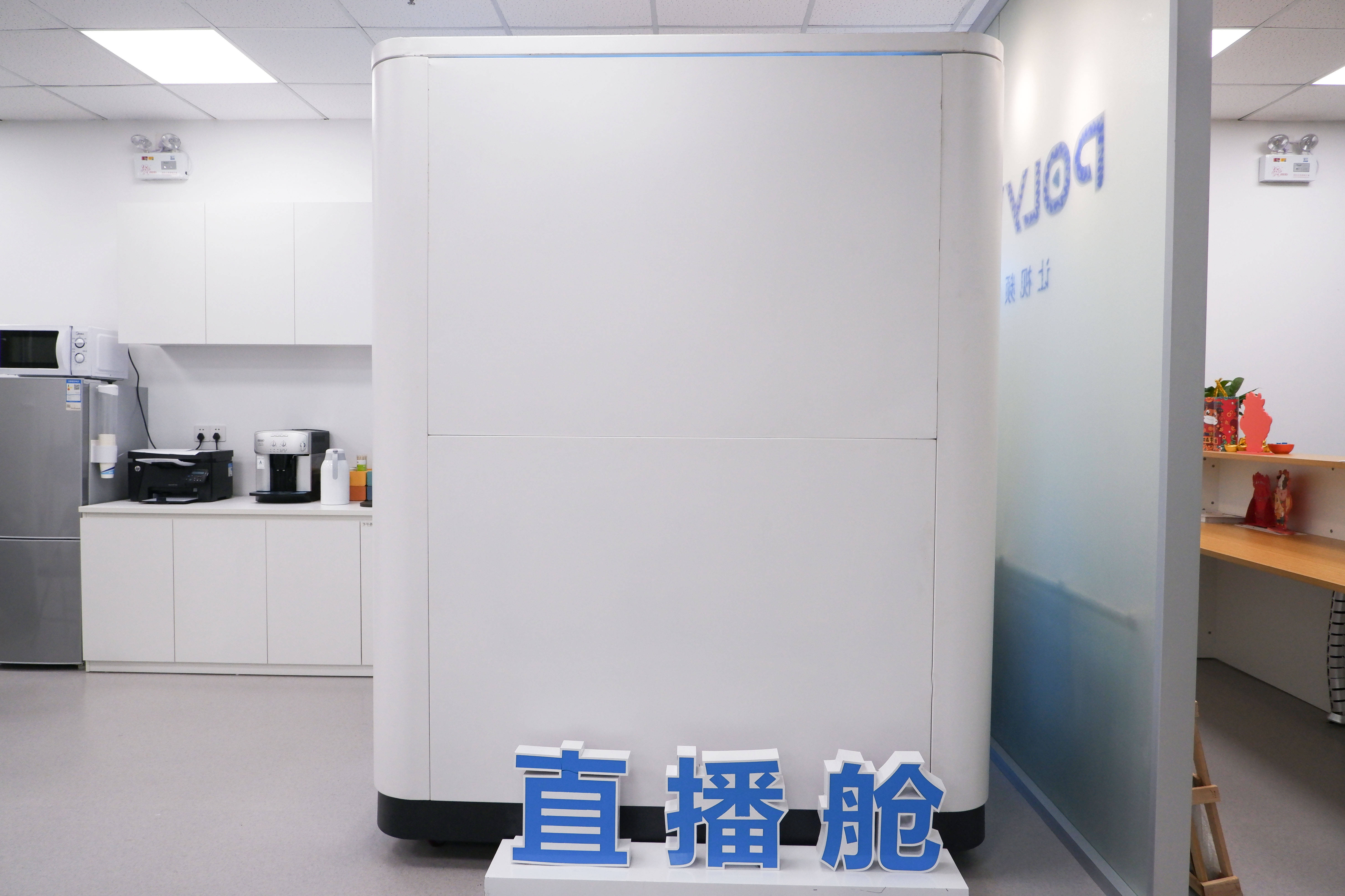 进入直播舱,瞬间就被这集硬核科技与人文关怀于一体的直播环境所吸引。舱内尺寸为长1.8米、宽1.62米、高2.14米,人坐在直播舱内空间算不上宽敞,但也绰绰有余。最主要的是,舱内设计可以说在各个细节方面都做得十分人性化,光照、隔音、降噪、通风......都能满足直播用户的个性化调节的需求。