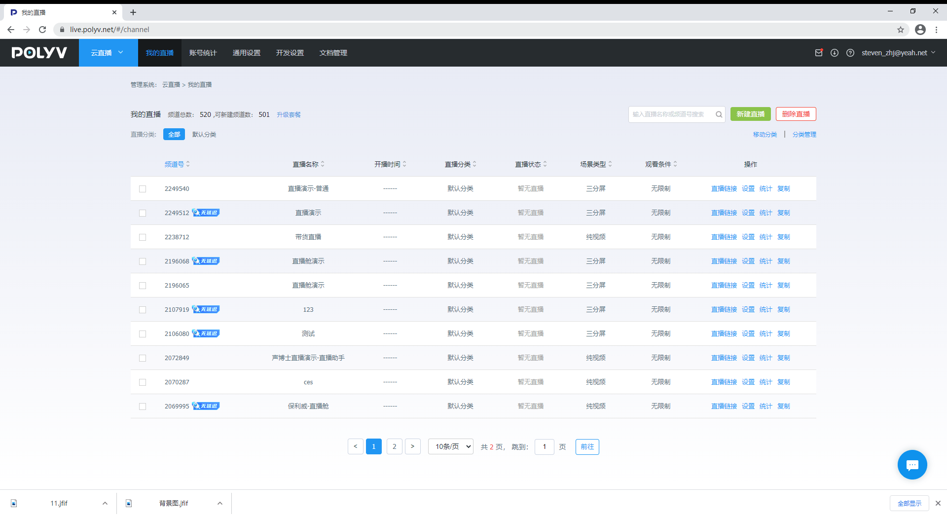首先登陆保利威官方网站,登陆个人管理账号,在【我的直播】页面可以查看和管理自己已有的直播间,我们【新建直播】体验一下整个过程。