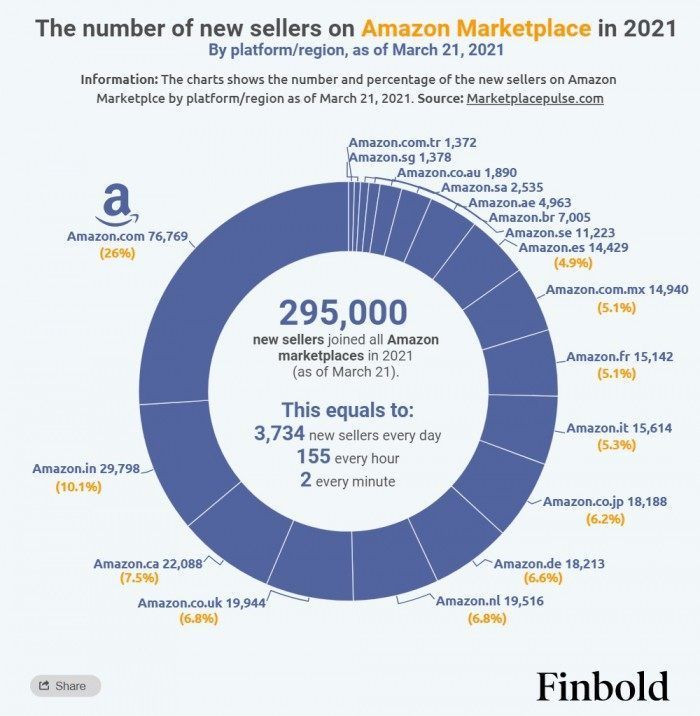 亚马逊卖家也因此迎来史无前例的增长潮,据Finbold最新数据显示,自2021年至今,亚马逊在全球范围内新增29.5万名新卖家。这其中,最大的增长来自中国,至今年1月,亚马逊新增卖家已有超过70%来自中国,且仍呈持续增长趋势。