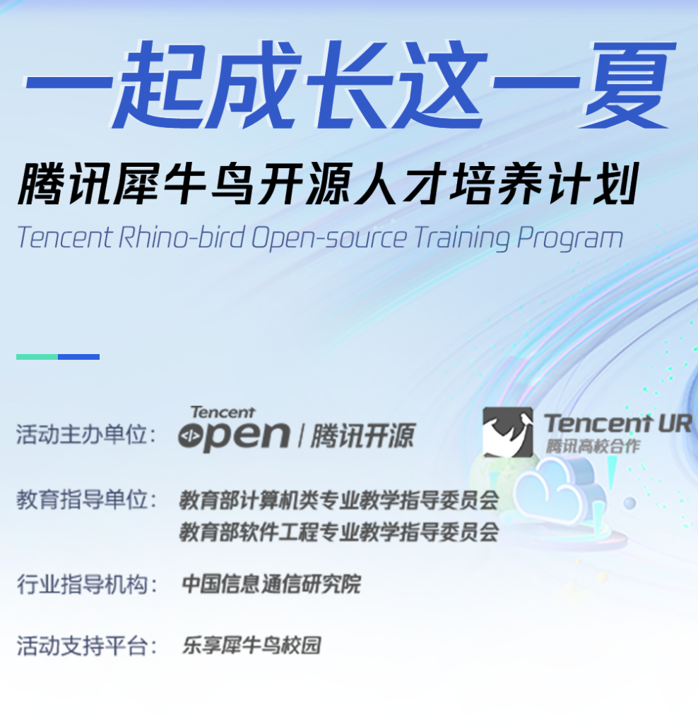 据了解,首届计划由腾讯开源和腾讯高校合作主办,乐享犀牛鸟校园提供平台支持,并由教育部计算机类教学指导委员会、教育部软件工程教学指导委员会作为教育指导单位,中国信息通信研究院作为行业指导机构。