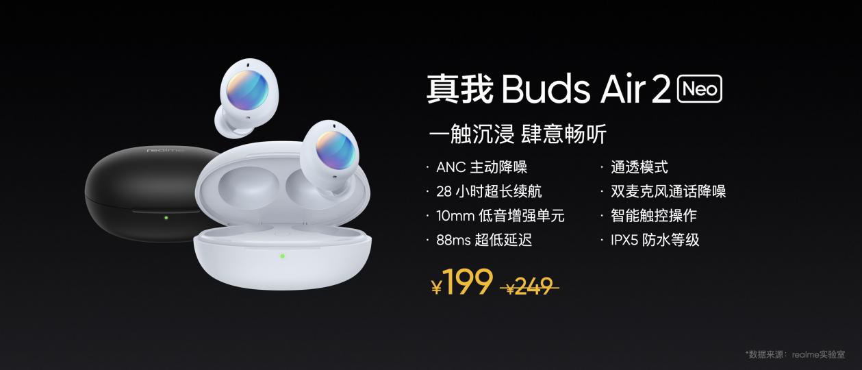 发布会,realme 还带来了两款 AloT 新品。真我 Buds Air 2 Neo 配备 25dBANC 主动降噪,拥有优秀的续航表现和连接性能,充电 10 分钟,听歌 3 小时,可随时随地享受安静、高保真的音质。外观设计上采用鹅卵石造型,优美曲线更贴合人体工学原理,长时间佩戴也非常舒适。此外,realme 还推出了「最有生活」的真我小夜灯,以甜甜圈为设计灵感,为生活带来更舒适的暖光享受。