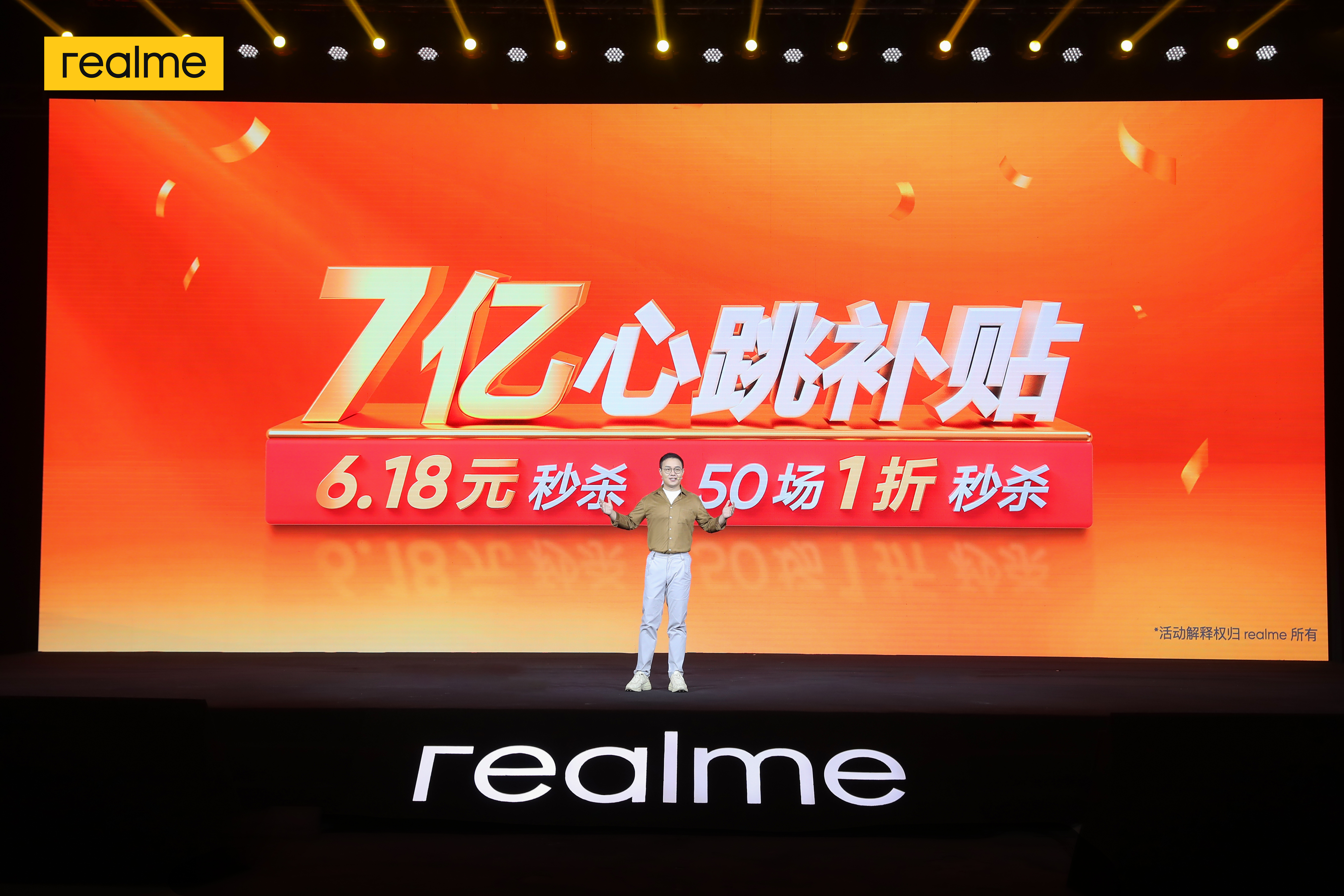 2021 年是 realme 在中国市场的爆发元年,realme 在中国市场呈现了势如破竹的态势,第一季度在手机品牌中增速第一,4 月单月销量突破 100 万台。在今年的 618,realme 准备了 7 亿重磅活动补贴、6.18 元秒杀手机、50 场一折秒杀等系列超级重磅福利为 618 冲刺百万台销量助力。realme 以「玩的就是心跳」为今年 618 的主题,除了以超狠福利回馈用户也希望每一位真我用户,都能勇敢追寻真正的心跳时刻。
