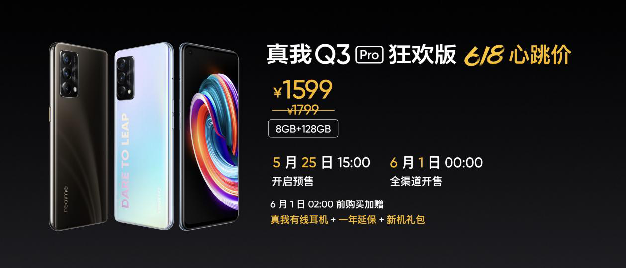 真我 Q3 Pro 是 1500 元内首款搭载天玑 1100 的旗舰,活动期间最高立减 200 元,预售价 1499 元起。大促新品真我 Q3 Pro 狂欢版 618 期间限时立减 200 元,8GB+128GB 版本 1599 元!真我 Q3 在低于地平线的价格上,全线产品再降 100 元,1199 元起售价给这个 618 带来足够大的惊喜!