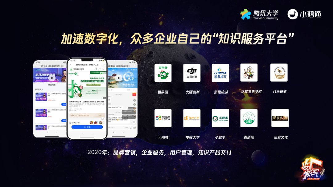 另外,随着直播带货的兴起,企业急需在微信生态内,以最快的速度搭建属于自己的线上知识服务平台,并通过直播等方式,帮助他们进行知识分享、内容教学、线上零售等工作。因此,越来越多的企业找到小鹅通,去进行数字化升级。