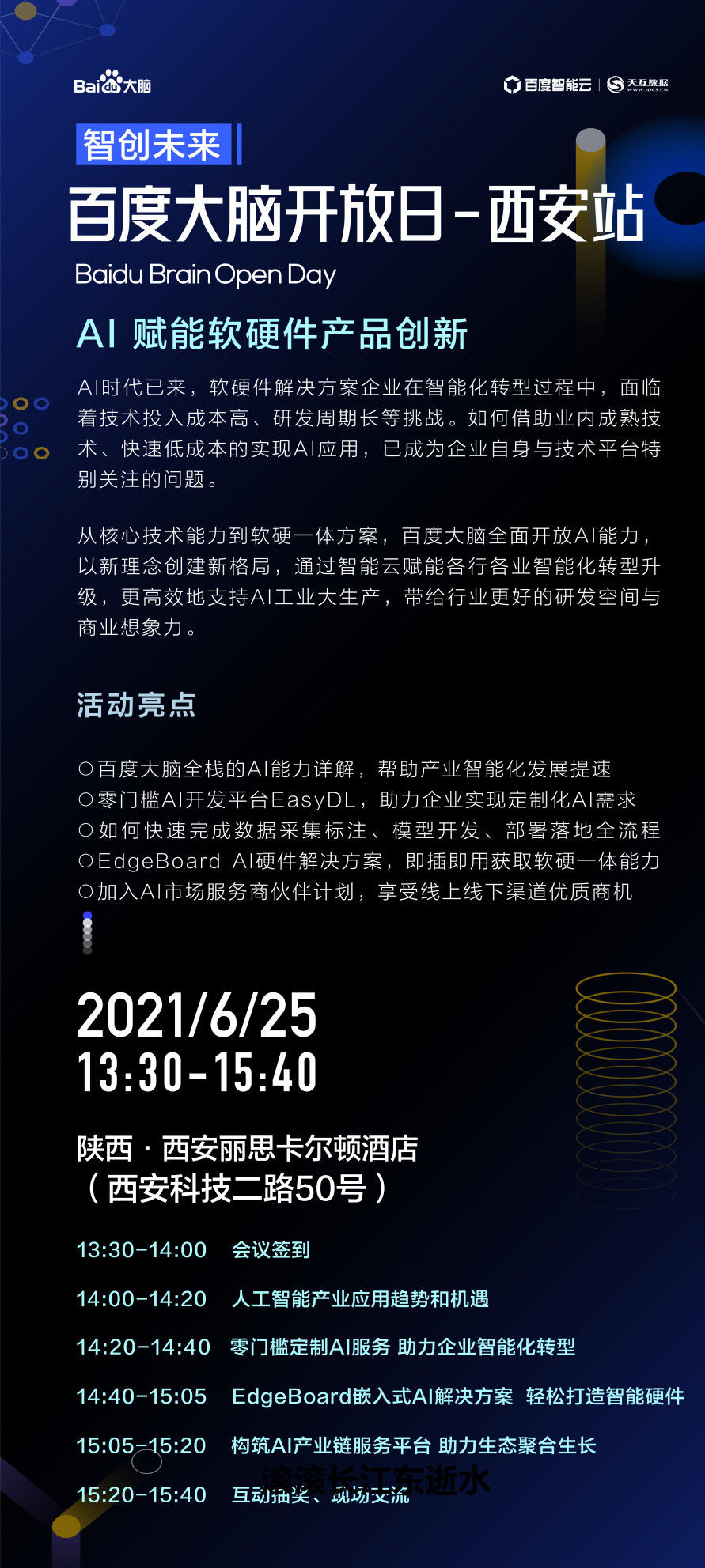 本次百度大脑开放日西安站,不但可以参与线下活动,与百度产品、技术专家面对面深入交流;还可以线上观看直播,随时随地了解精彩内容,参与直播互动赢大奖,现在访问百度大脑官方网站,立即报名吧!