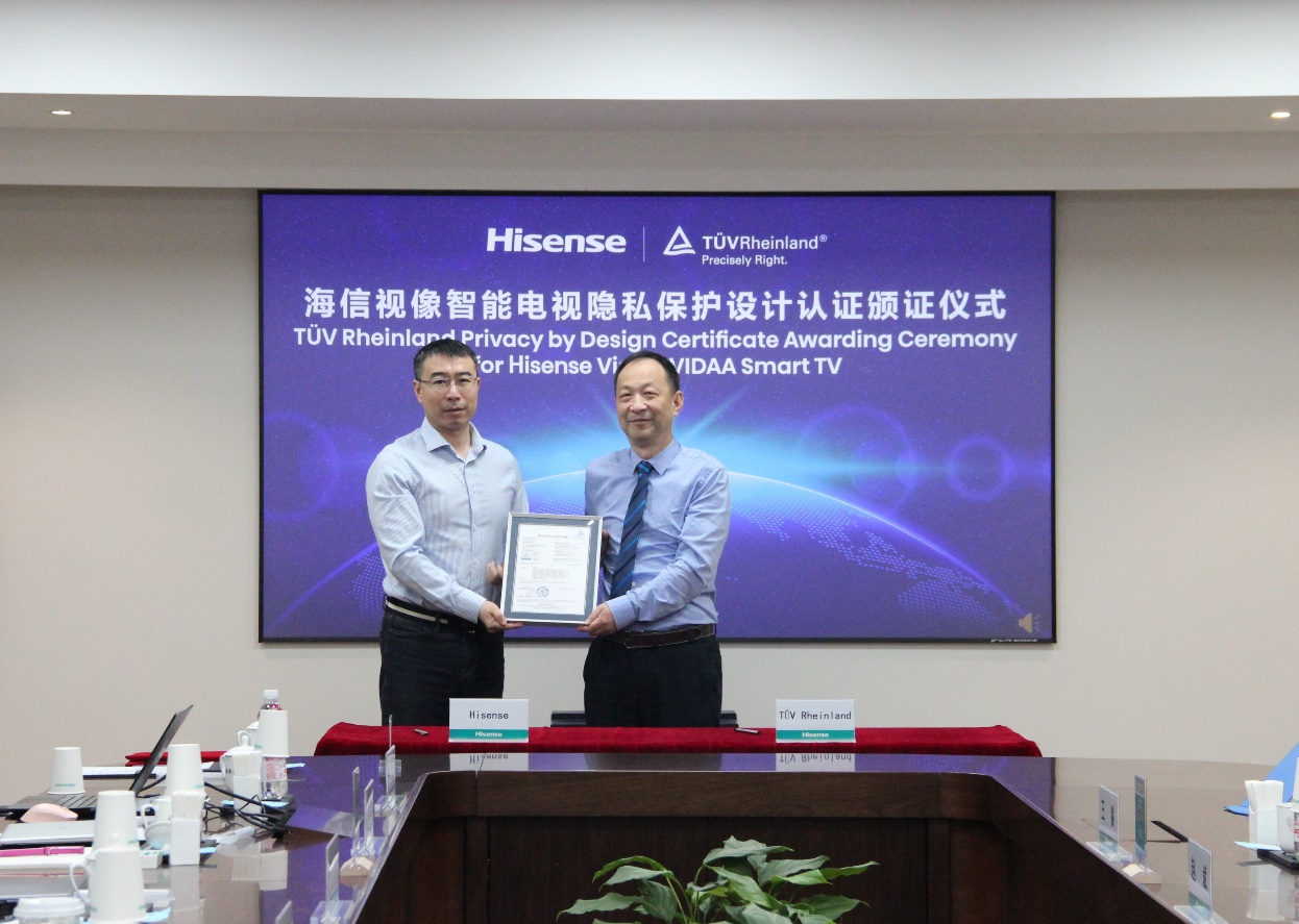 6月25日,德国莱茵TÜV大中华区(简称“ TÜV 莱茵”)为海信视像的VID A A 7 2671 平台智能电视产品颁发了ETSI EN 303 645物联网(IoT)产品网络安全和隐私保护标准认证证书,海信成为全球首个获此证书的电视品牌。