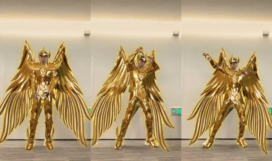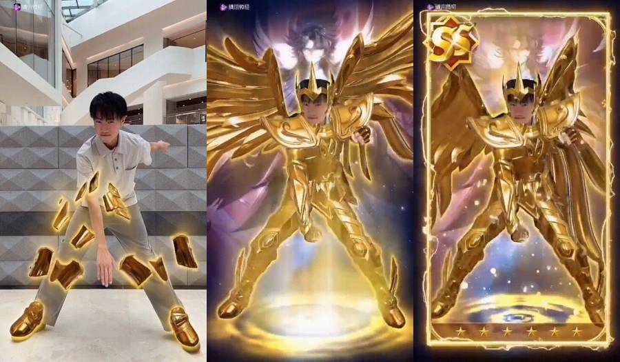 用户可上传或拍摄一张正面照片,系统即可自动识别照片姿势,给人物全身换装黄金圣斗士铠甲。或者在拍摄页面选择圣斗士相关特效,全身入镜即可变身圣斗士,即使在拍摄过程中处于运动状态,黄金盔甲特效也会实时计算跟踪。在拍摄特效界面,可召唤多个星座的圣斗士,如黄金射手座、双子座撒加、处女座沙加等。