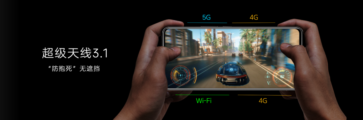 在 5G 通讯方面,新机搭载 5G 超级天线 3.1,配备「防抱死」天线系统,信号强度提升 100%。其特有的网络探测算法可帮助手机智能识别最佳网络,实现 5G/Wi-Fi1/Wi-Fi2 三通道无缝切换、智能加速。新机信号稳、找网快、下载速率高,时刻带来畅快的 5G 体验。