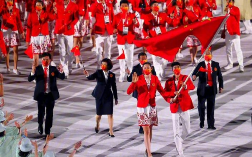 作为奥运史上首次需戴口罩入场的开幕式口罩成了各国代表团展示民族文化的重要元素 中国代表团的口罩直接脱颖而出