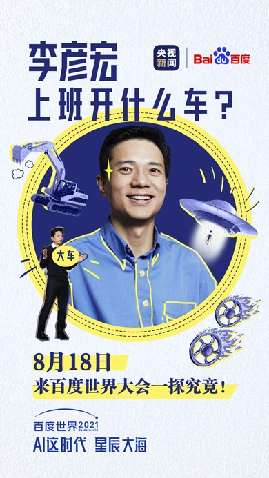 今日,百度官方发布了一张李彦宏的海报,为即将于8月18日上午9点30分以直播形式举行的百度世界大会2021预热。
