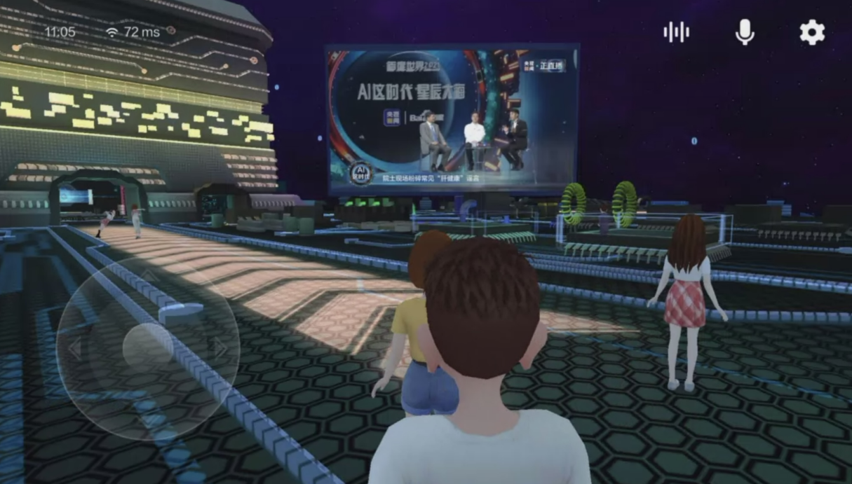 不同于当前大多数VR游戏及应用,“希壤”具备多人实时互动的能力,可支持包括会议、展会、教育在内的泛社交需求。而依托云手机等技术,“希壤”也支持通过手机App进入“世界”参与互动。这也是很多小伙伴打开VR分会场,发现自己的朋友们也在这里的原因。百度打造的,是一个可以交互的“元宇宙”。