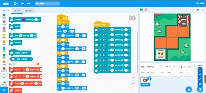 具备基础编程逻辑思维的用户(中、高年级儿童):可以通过 toio™进行可视化编程(需要用到电脑或其他终端),利用索尼开发的应用程序,用户可以利用精准的坐标,通过 Q 宝绘制形状,并使用自己编写的程序来操控 Q 宝机器人。